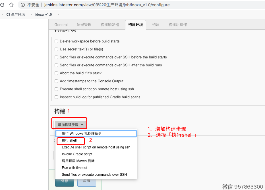 3、添加 shell执行构建