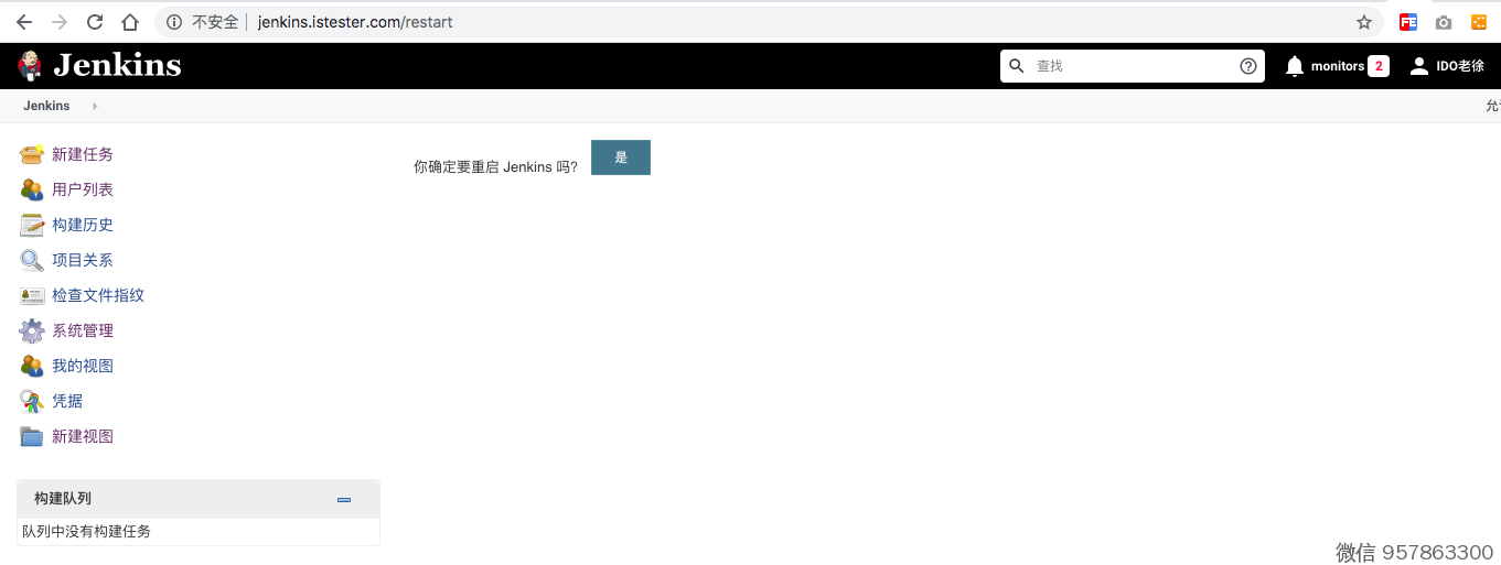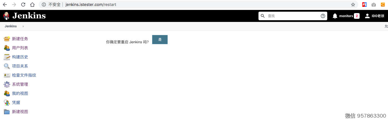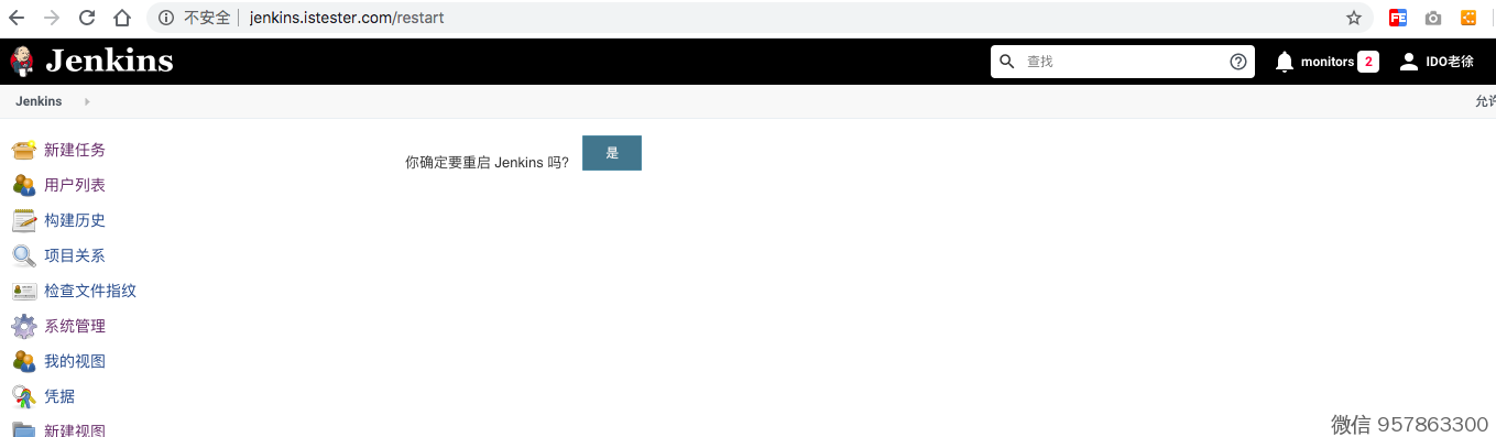 比如,http://jenkins.istester.com/restart